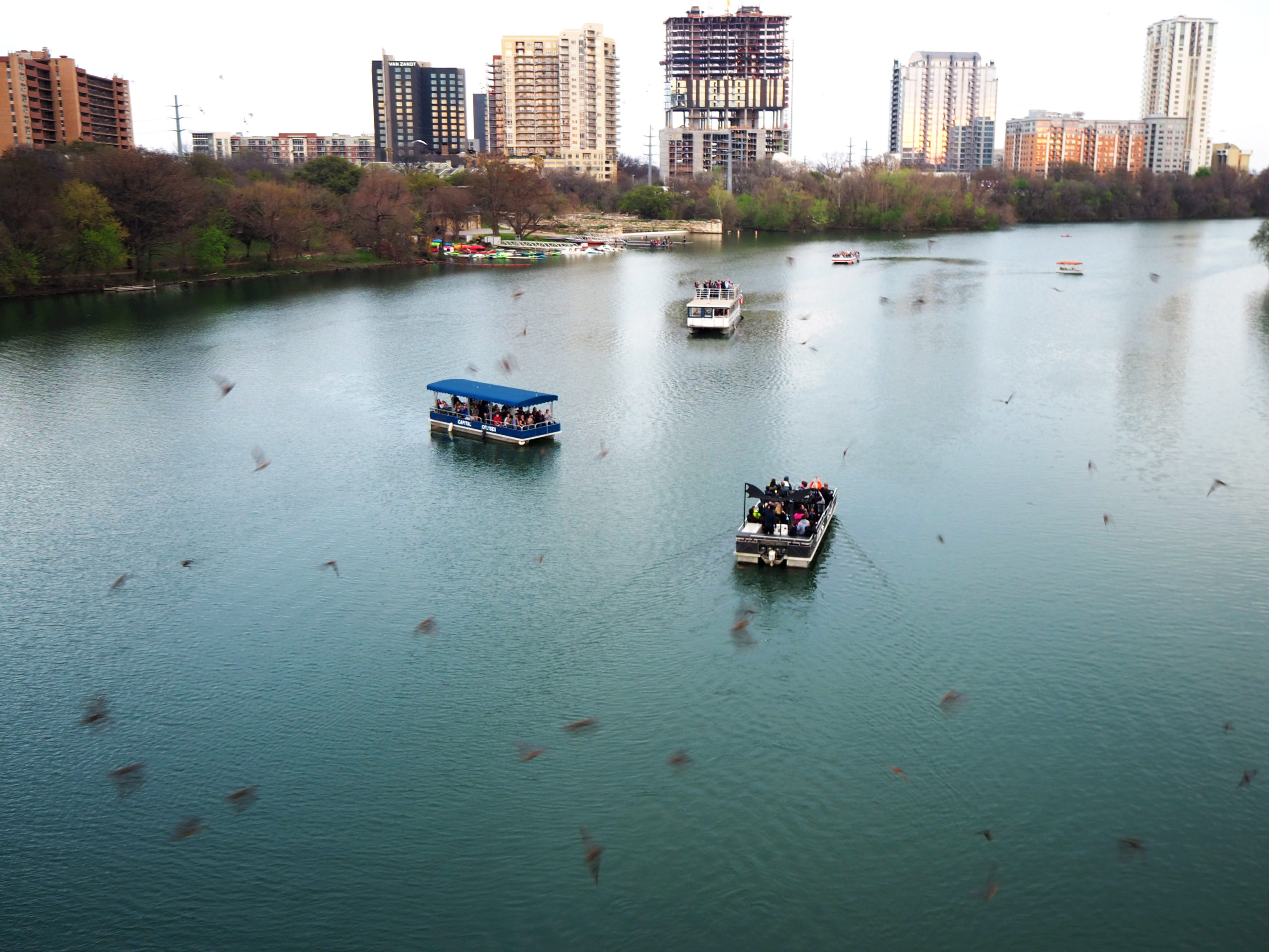Hundreds of people line up every night to watch the bats take their flight from the bridge, either along the edge of the bridge or at the Statesman Bat Observation Center adjacent to it. You can also book boat or kayaking tours to see them. Check out this article for the best tips and tricks to watching the bats nightly flight.